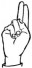 На ћирилици написано КОСТАДИН КОРАЦА састоји се из 14 слова [?]. Исписано ћириличном једноручном азбуком за глувонеме: